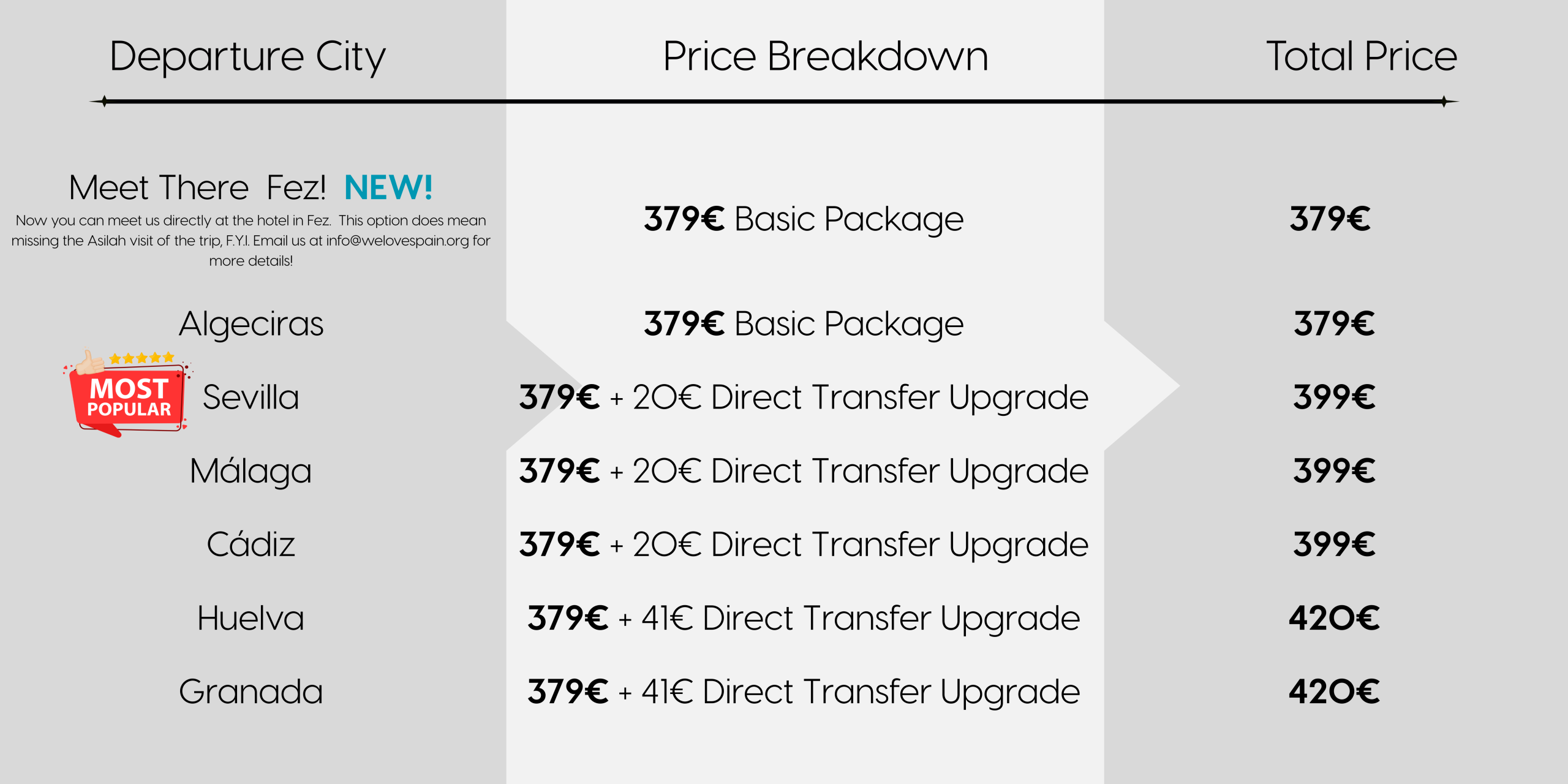 * GRANADA, MÁLAGA, HUELVA, & CÁDIZ DEPARTURE available for groups of 15 or more. Just write us at info@welovespain.org